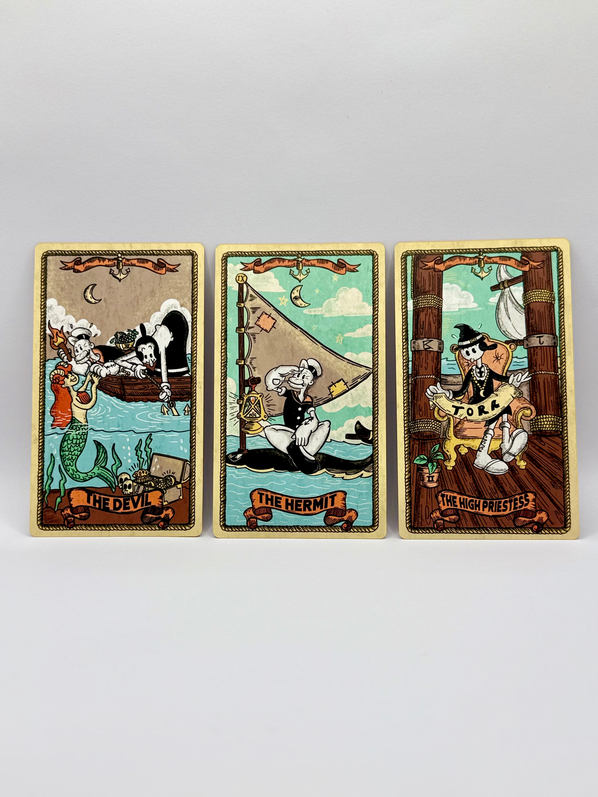 Step into a vintage world where Popeye’s charm meets timeless tarot. Sailor’s Arcana is a fully illustrated 78-card deck, blending classic rubber-hose style art with traditional tarot symbolism. After a successful Kickstarter campaign, Sailor’s Arcana is finally available to order.
